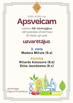 - Atzinība - Ričards kolosovs (9.b), Elīna Jaundzema (9.c)