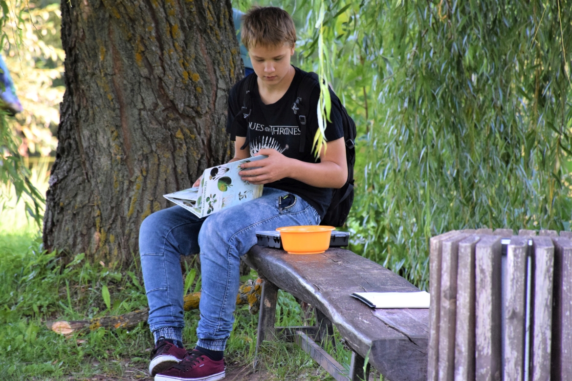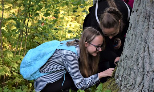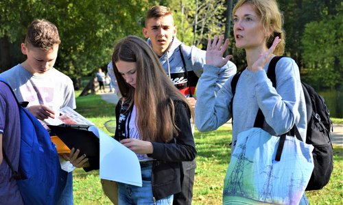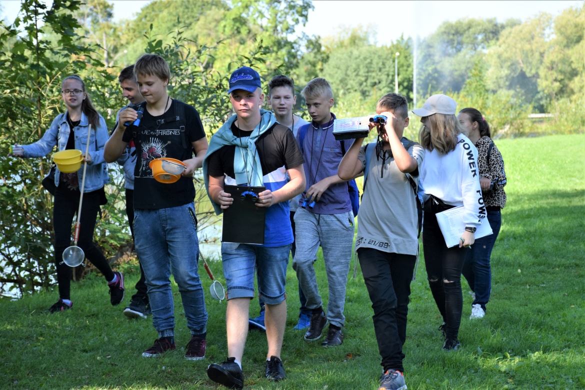 8. klases skolēni Preiļu VLMM izglītojošā nodarbībā "Preiļu muižas dzīvie dārgumi".
