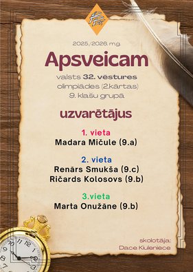 Apsveicam vēstures olimpiādes uzvarētājus!